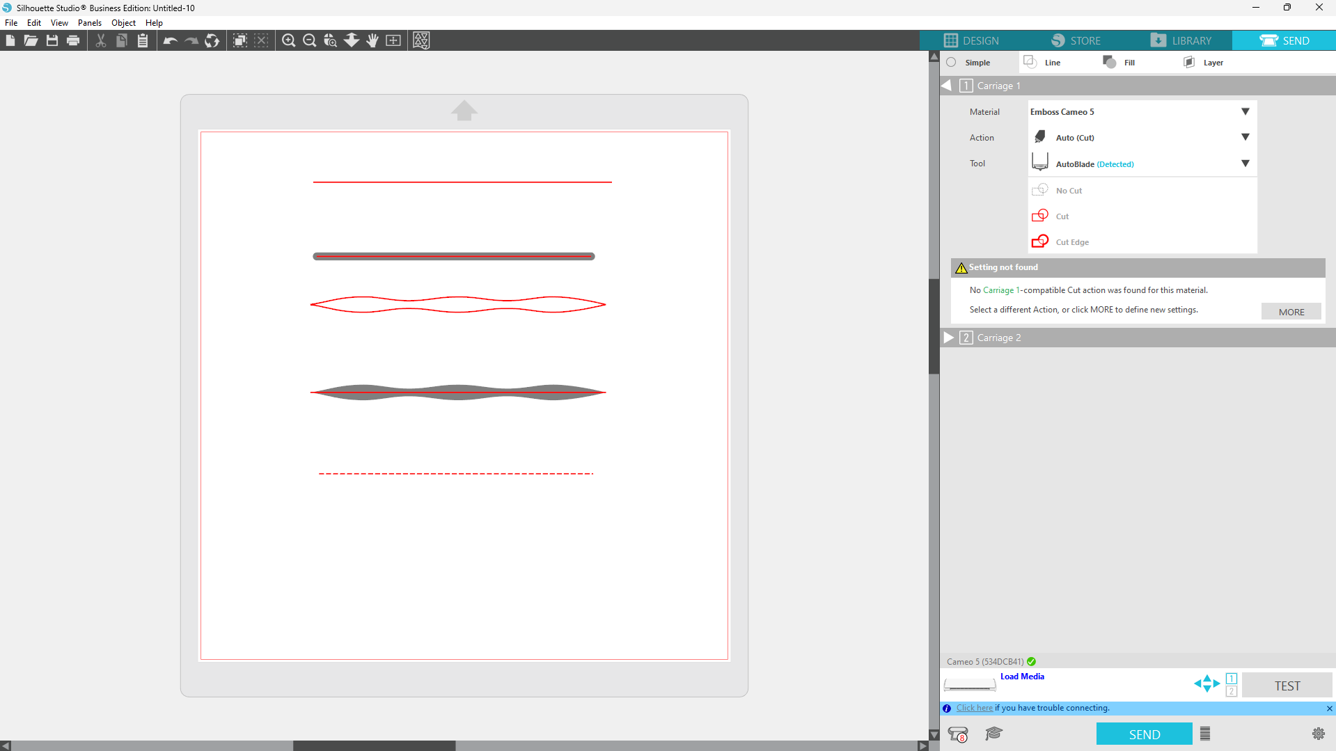 - For decorative line styles, use the Trace feature to create a cut path if the line is not cutting correctly.